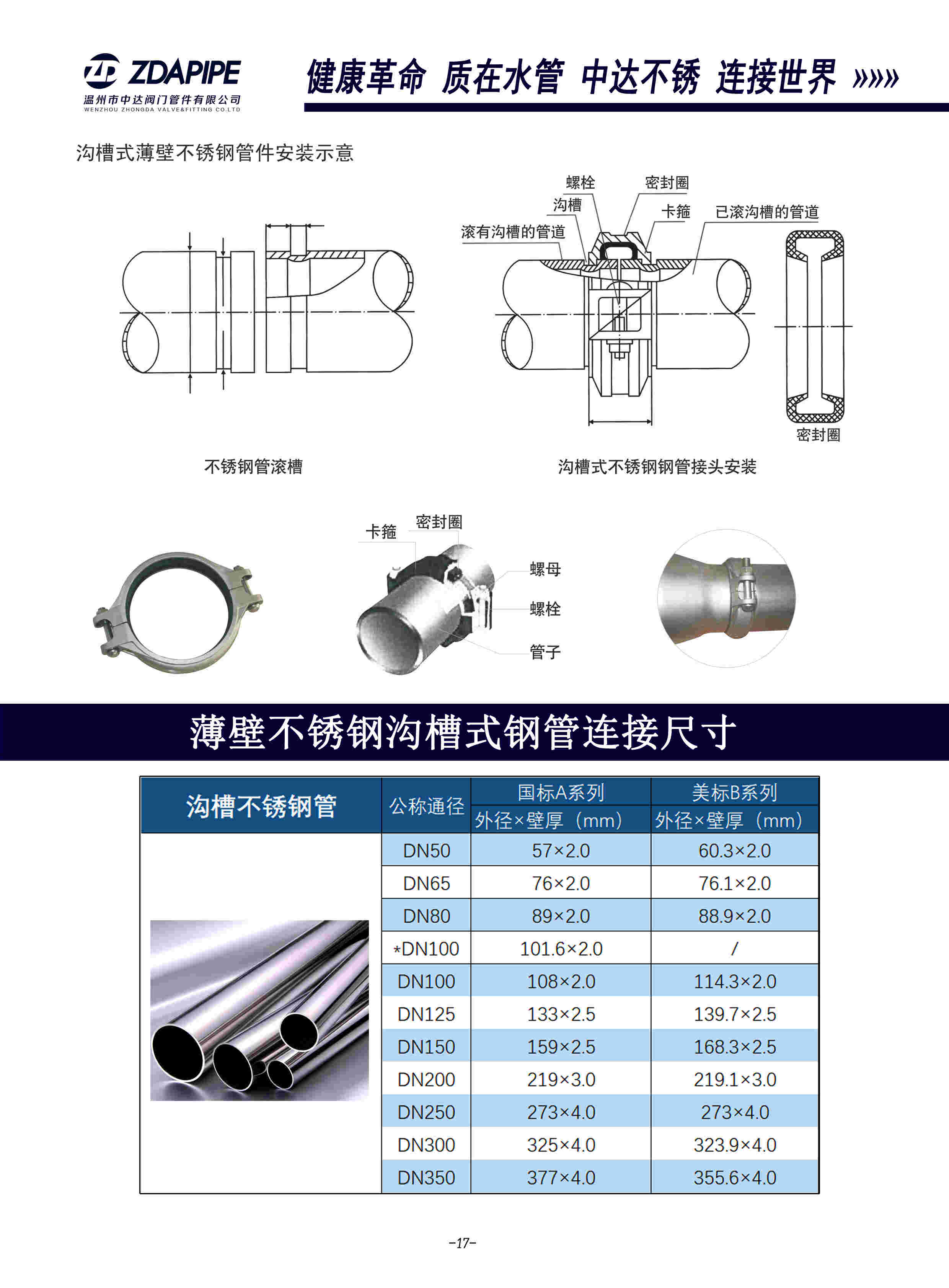 - 用途范圍:薄壁不銹鋼水管廣泛應(yīng)用于市政自來水管道工程,新建小區(qū)直飲水工程,工業(yè)與民用 建筑、賓館、公共建筑、睬氣供應(yīng)等分供水系統(tǒng)。給水,排水,二次供水,太陽能,水務(wù)工程,自來水公司,醫(yī)院,學(xué)校,酒店,賓館,天然氣工程,自來水工程,直飲水工程,家裝水管工程,工業(yè)管道工程,水處理工程,清潔能源工程,綠色能源,健康革命,質(zhì)在水管,中達(dá)不銹,連接世界。