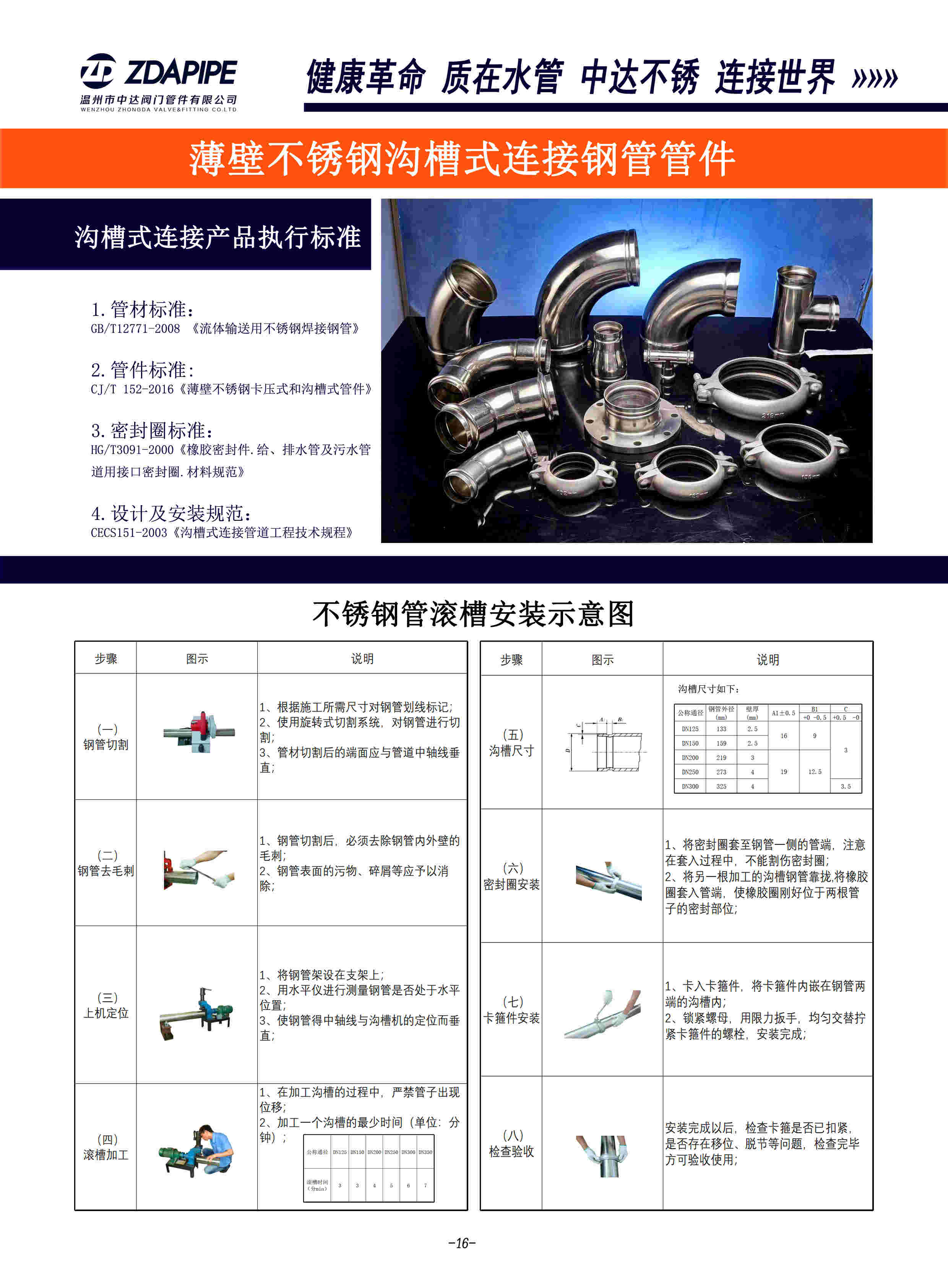 - 執(zhí)行標(biāo)準(zhǔn):CJ/T 152-2016《薄壁不銹鋼卡壓式和溝槽式管件》