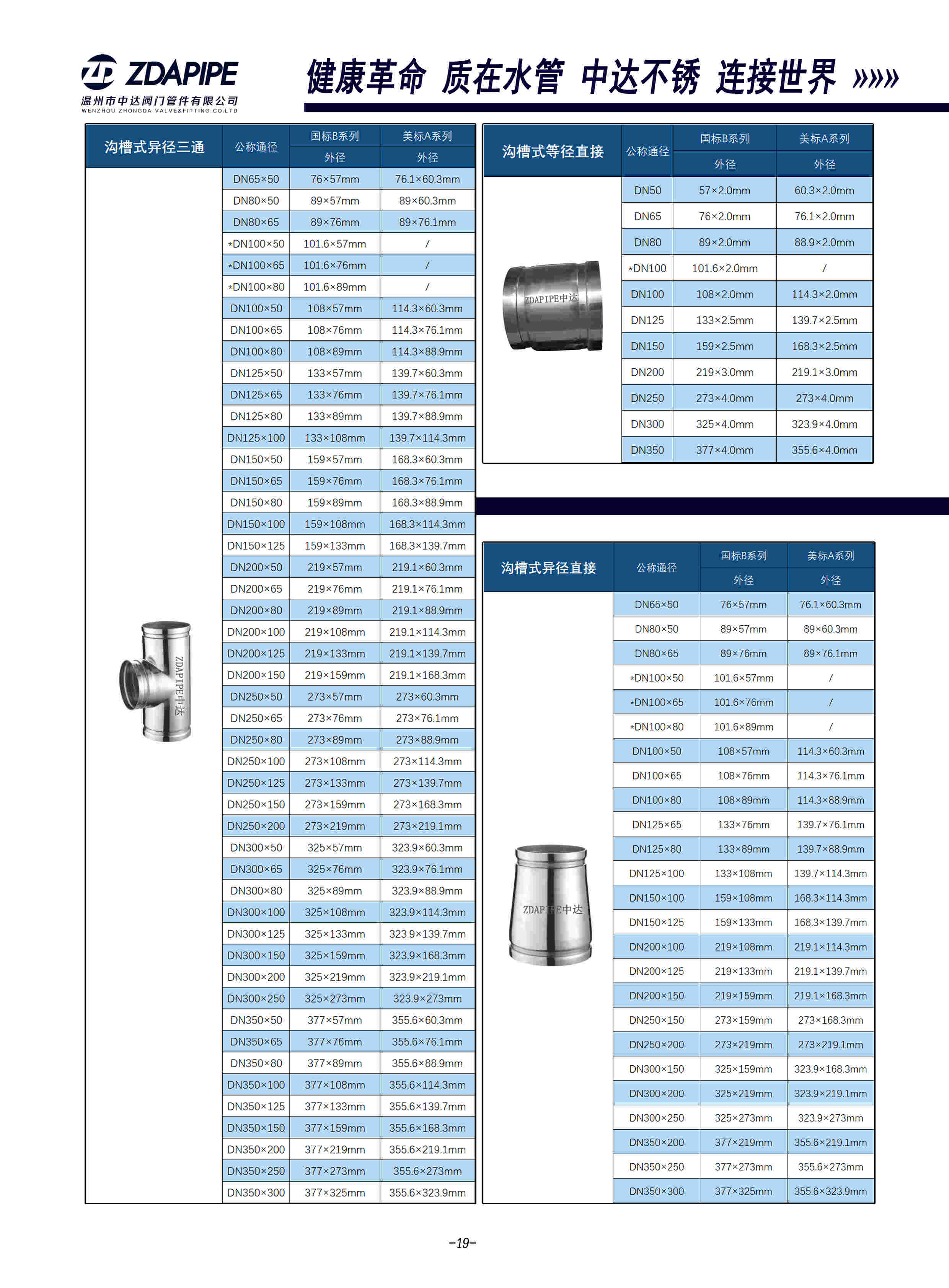 - 用途范圍:不銹鋼溝槽管件廣泛應(yīng)用于市政自來水管道工程,新建小區(qū)直飲水工程,工業(yè)與民用 建筑、賓館、公共建筑、睬氣供應(yīng)等分供水系統(tǒng)。給水,排水,二次供水,太陽能,水務(wù)工程,自來水公司,醫(yī)院,學(xué)校,酒店,賓館,天然氣工程,自來水工程,直飲水工程,家裝水管工程,工業(yè)管道工程,水處理工程,清潔能源工程,綠色能源,健康革命,質(zhì)在水管,中達(dá)不銹,連接世界。
