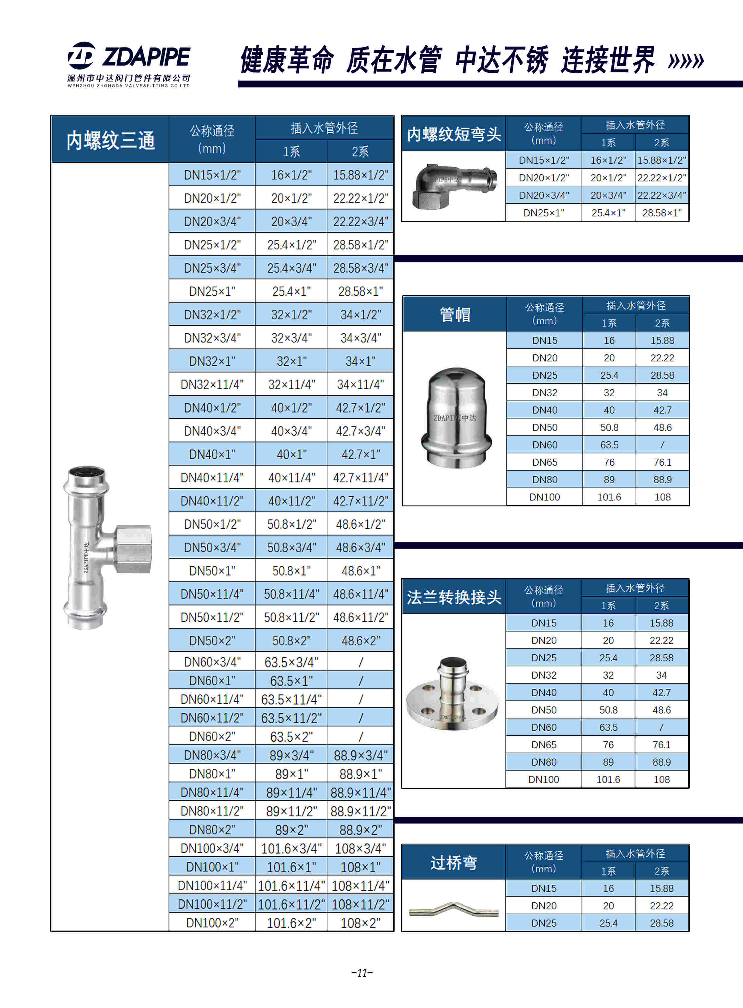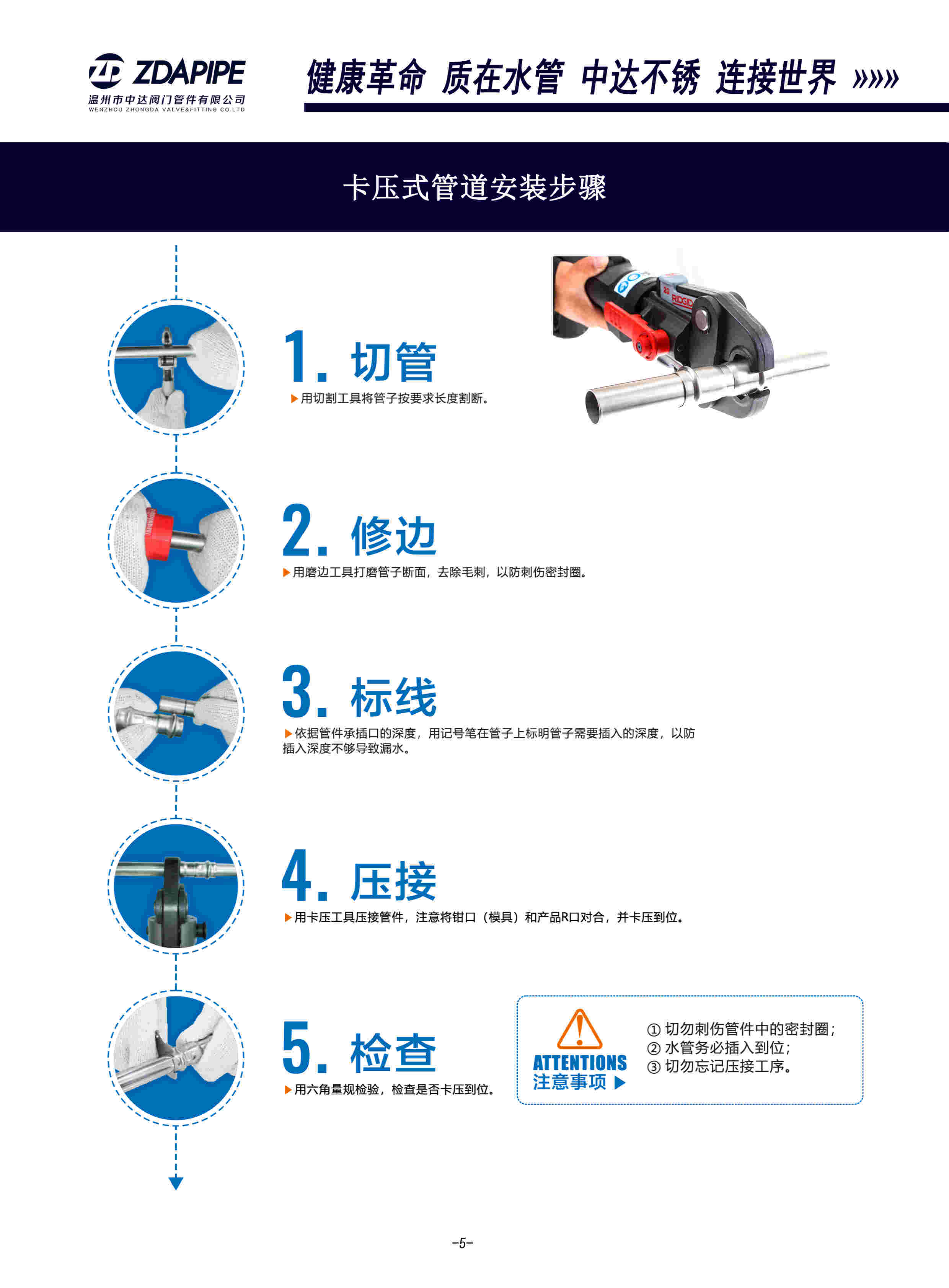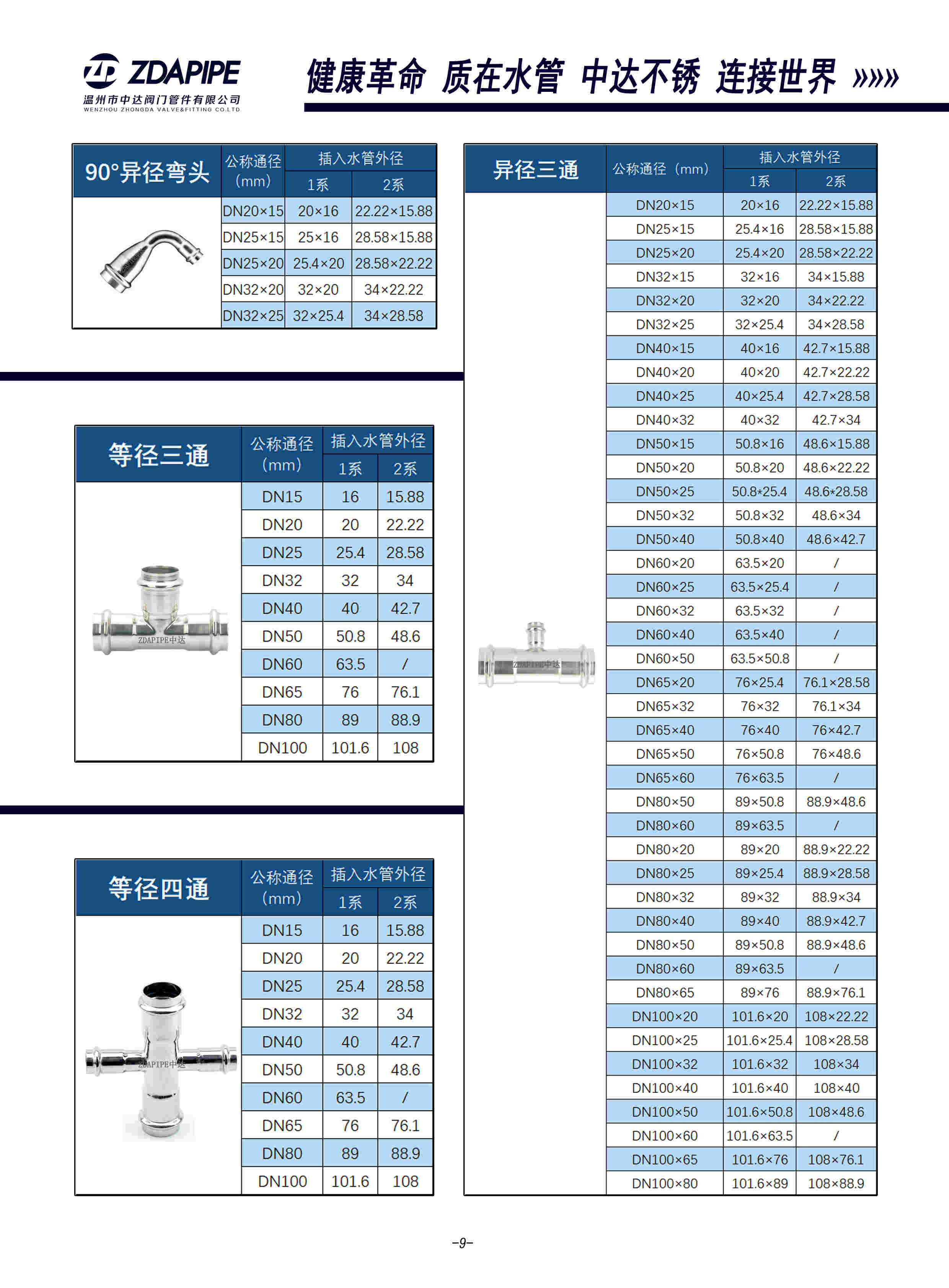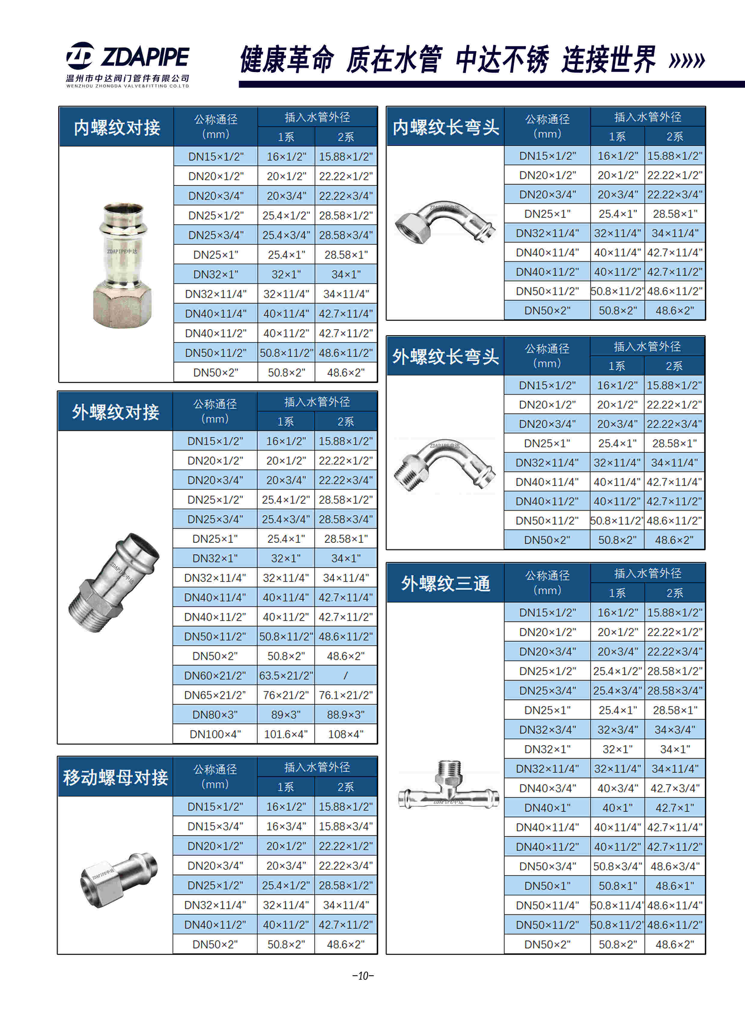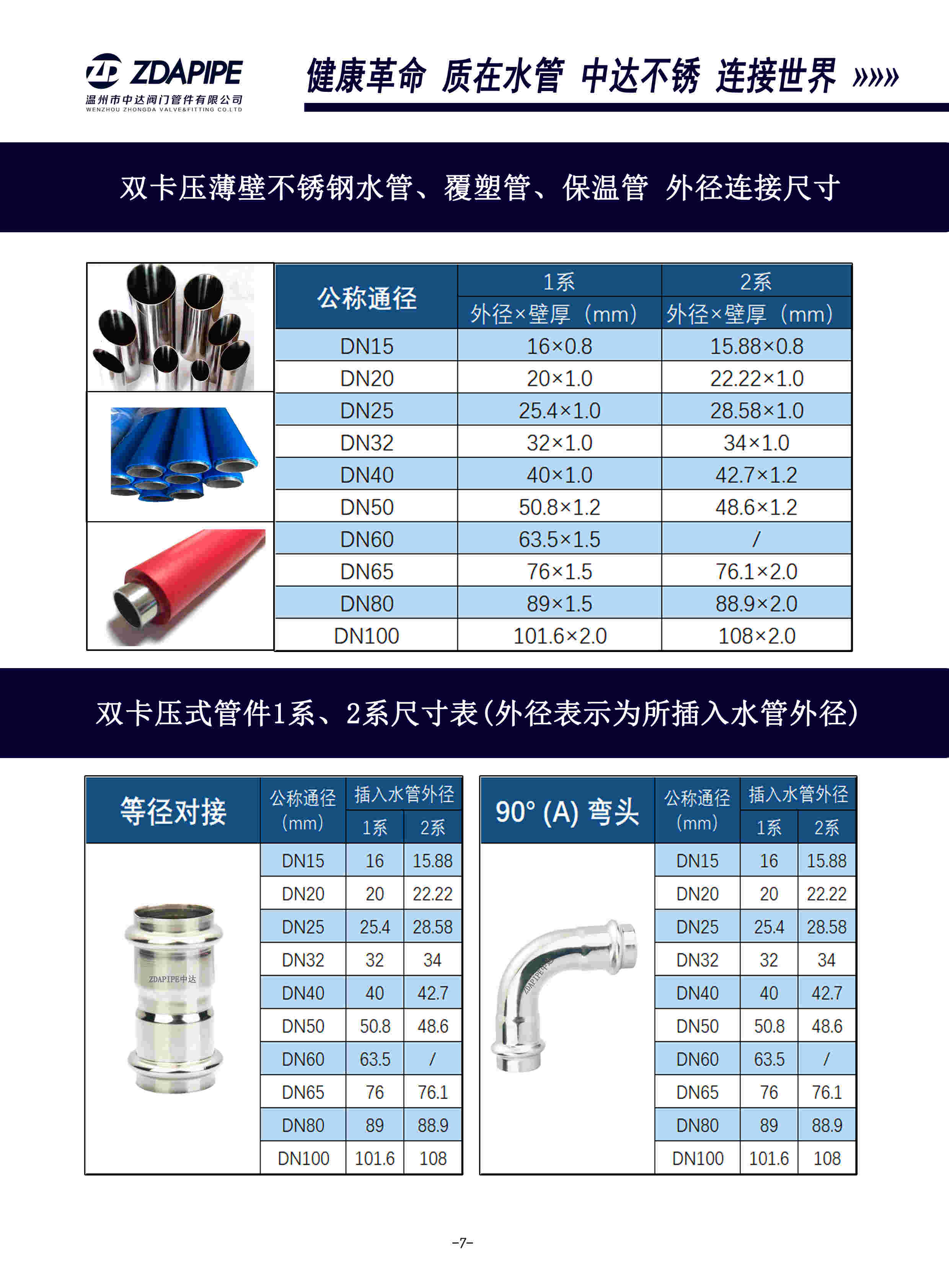- 用途范圍:雙卡壓管件廣泛應(yīng)用于市政自來水管道工程,新建小區(qū)直飲水工程,工業(yè)與民用 建筑、賓館、公共建筑、睬氣供應(yīng)等分供水系統(tǒng)。給水,排水,二次供水,太陽能,水務(wù)工程,自來水公司,醫(yī)院,學(xué)校,酒店,賓館,天然氣工程,自來水工程,直飲水工程,家裝水管工程,工業(yè)管道工程,水處理工程,清潔能源工程,綠色能源,健康革命,質(zhì)在水管,中達不銹,連接世界。